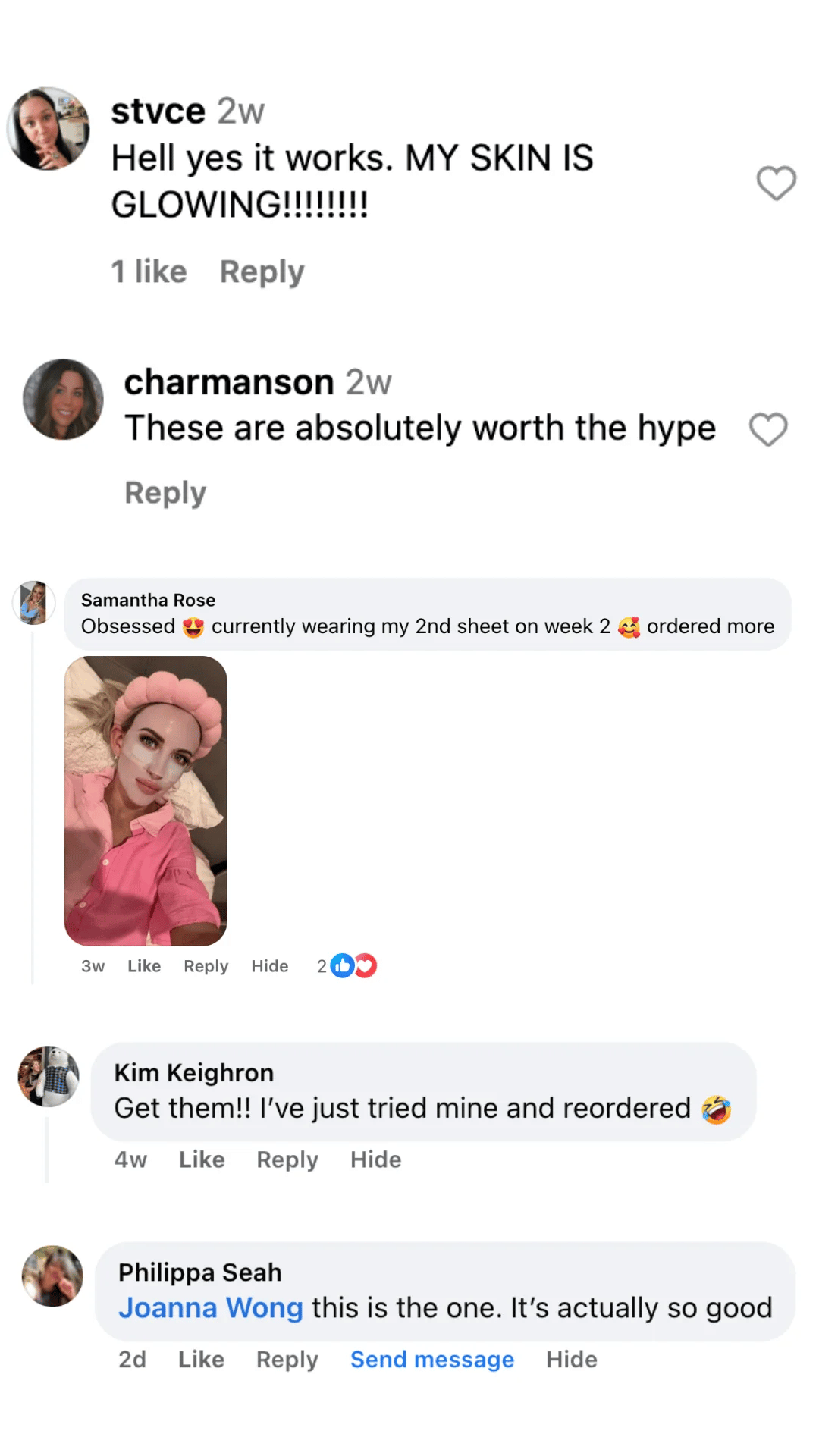 Everything. We use 3x more collagen, a two-piece custom-fit design, and a low-molecular blend of peptides and hydration complexes for visible results — fast. No stickiness, no gimmicks. Just real glow.